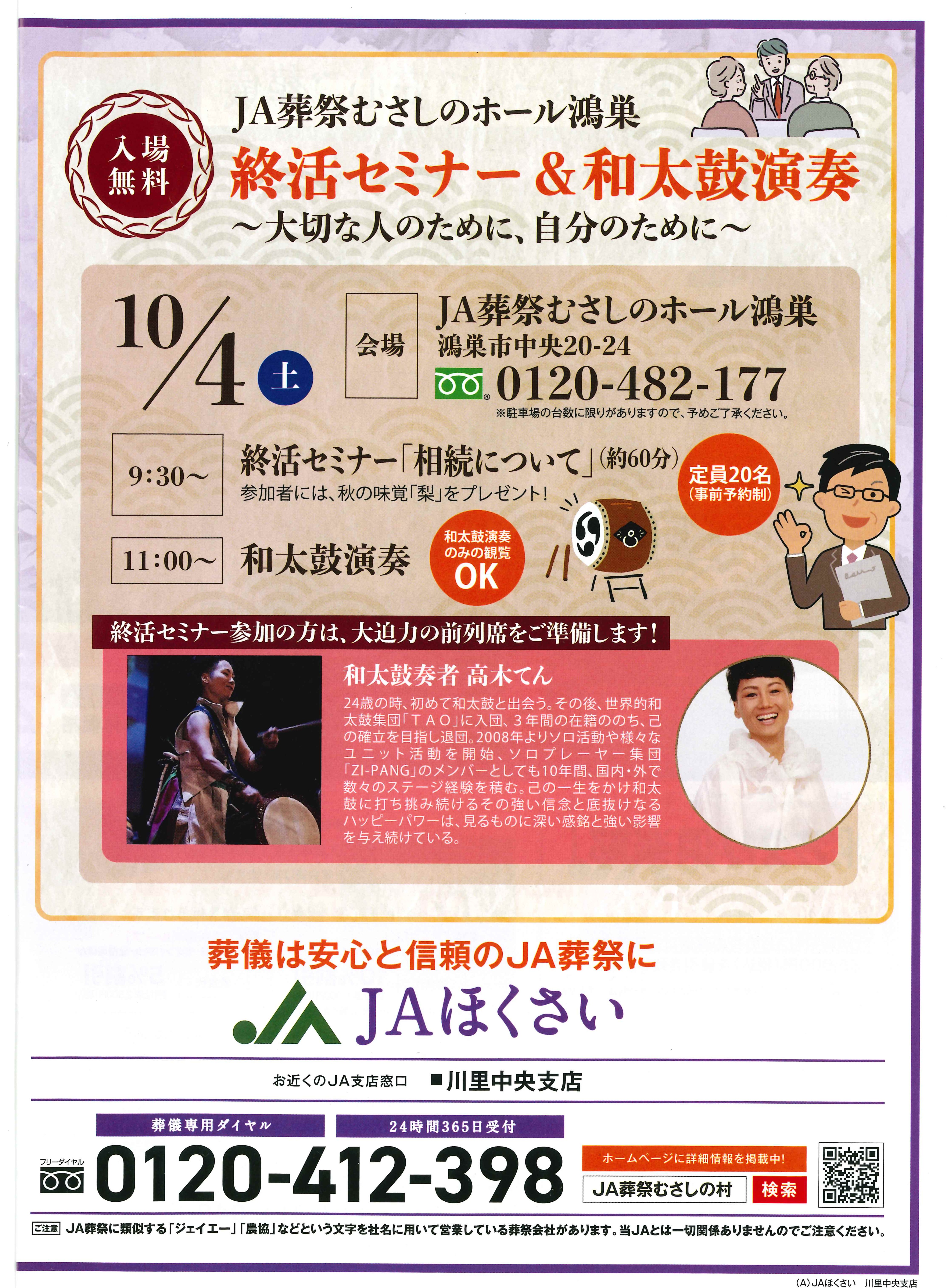 【終活セミナー&和太鼓演奏 開催のお知らせ】